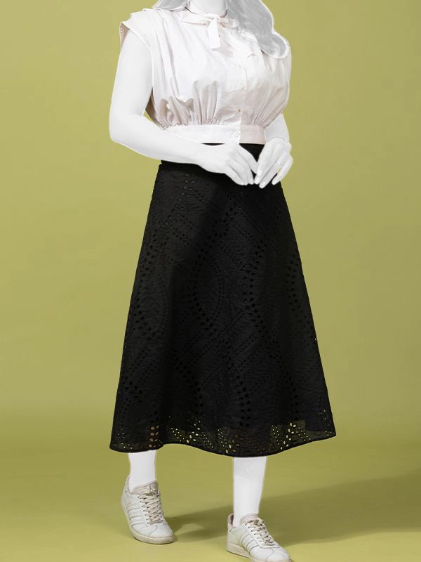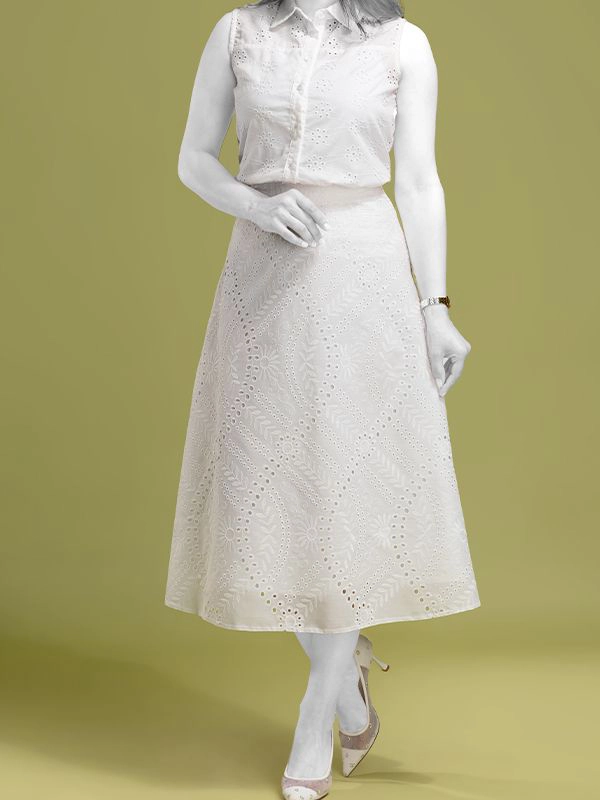 Women’s cream embroidered midi evening skirt with lining by Nourhan Bornos